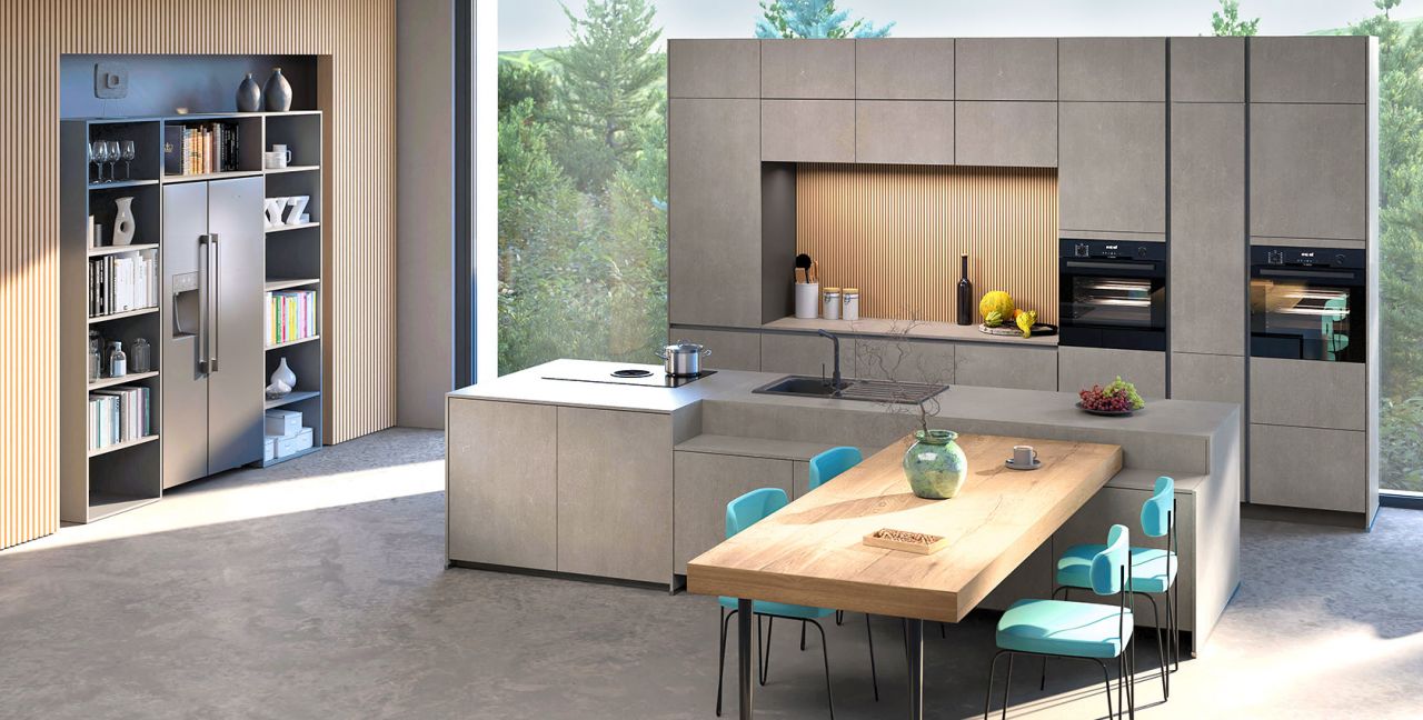 Inklusive 2x Einbaubackofen schwarz Bosch HBG5780B6 Energieeffizienzklasse A, Glaskeramik Kochfeld mit Induktion und Kochfeldabzug (Umluft) Bosch PXX890D51E, Einbau-Designspüle Elleci Logik 300XL-Schränken, Hochschrankregalen, Essplatz, Apothekerschrank.